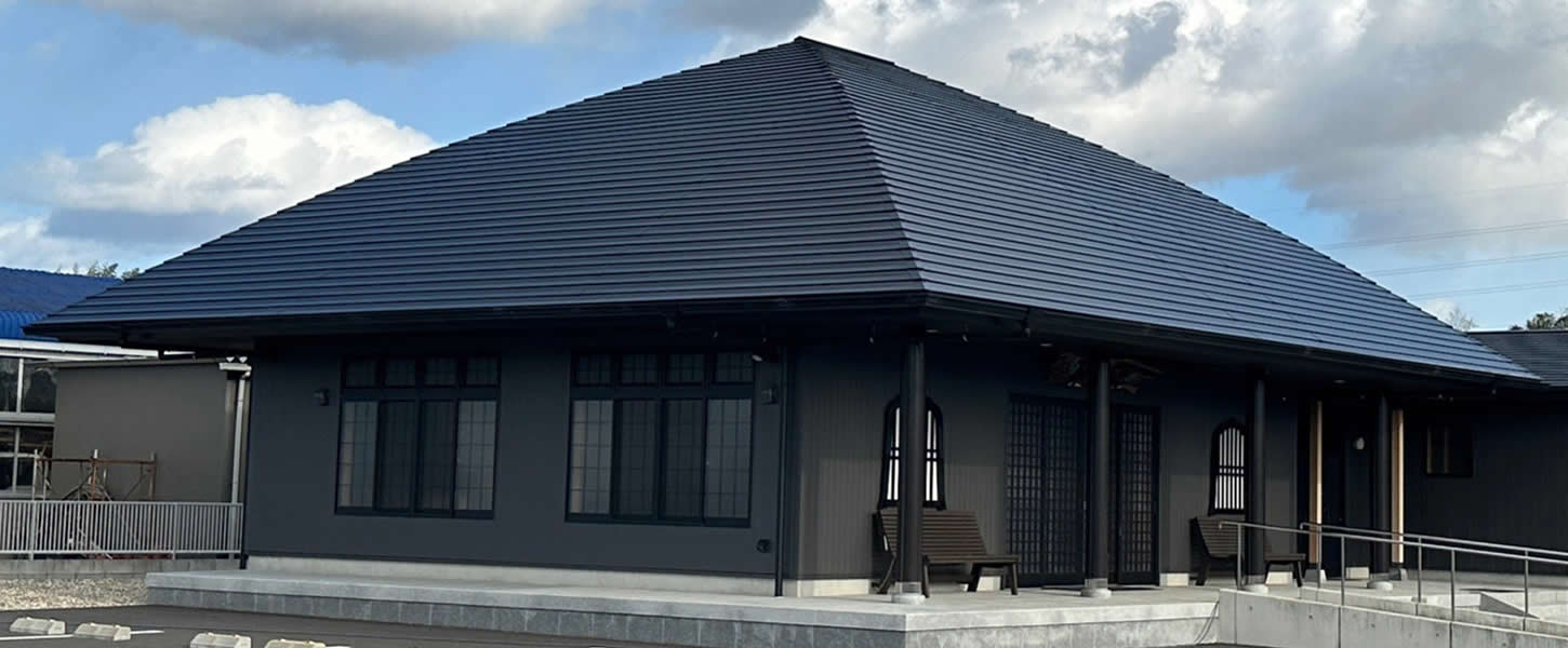建設業許可も取得しており、豊川市を拠点に外壁工事、屋根工事、雨漏り修理、雨樋工事や社寺、工場、学校、倉庫などの公共工事にも対応いたします。