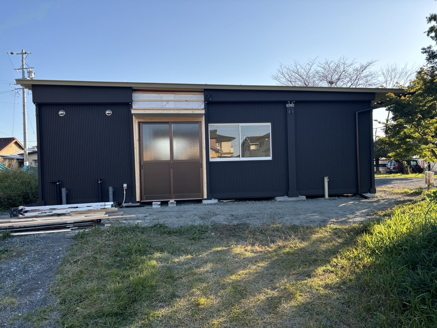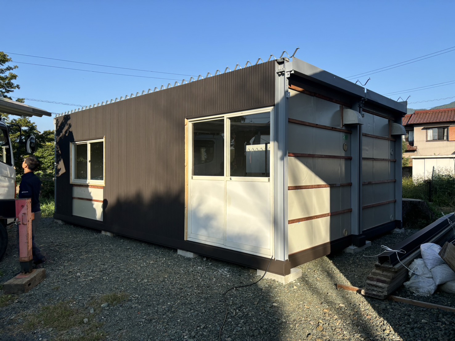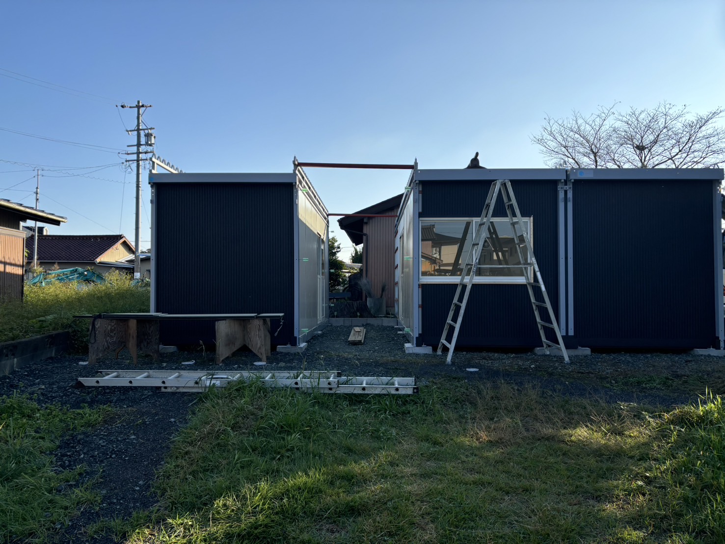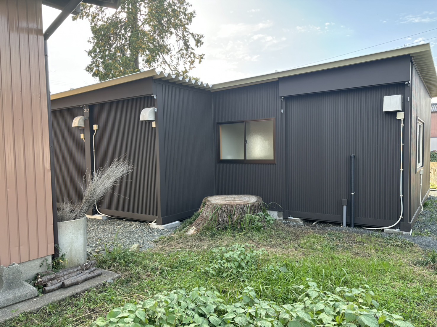 三台のプレハブを大改造! 多目的スペースにしました。 外壁もカッコよく仕上がりました。