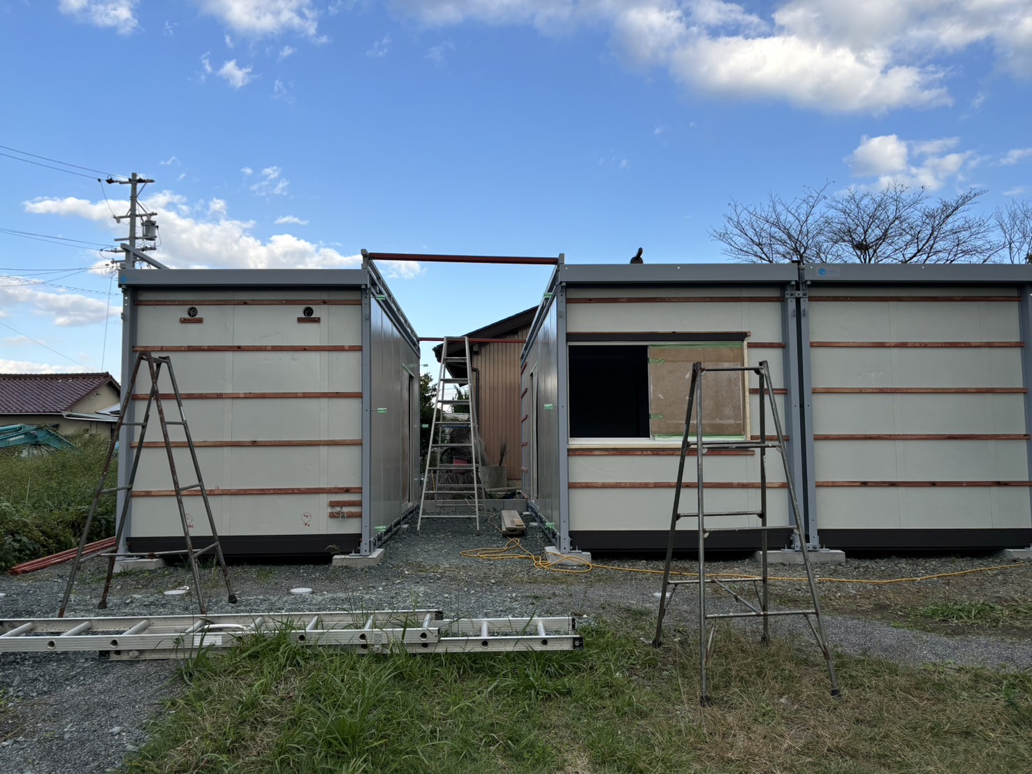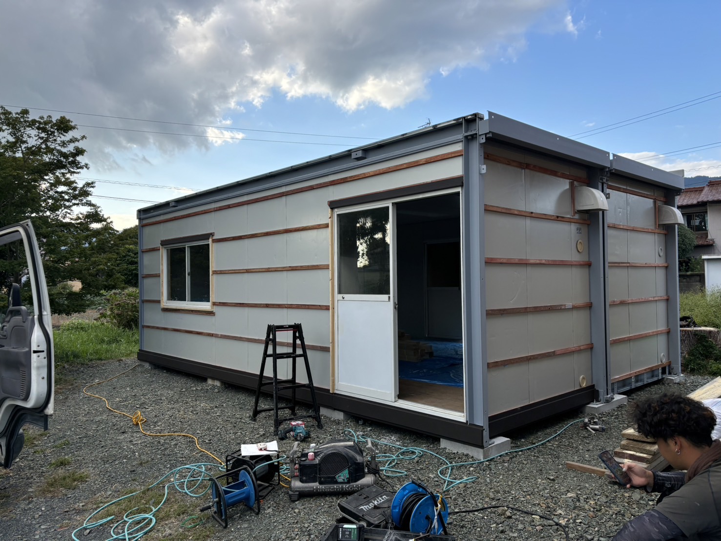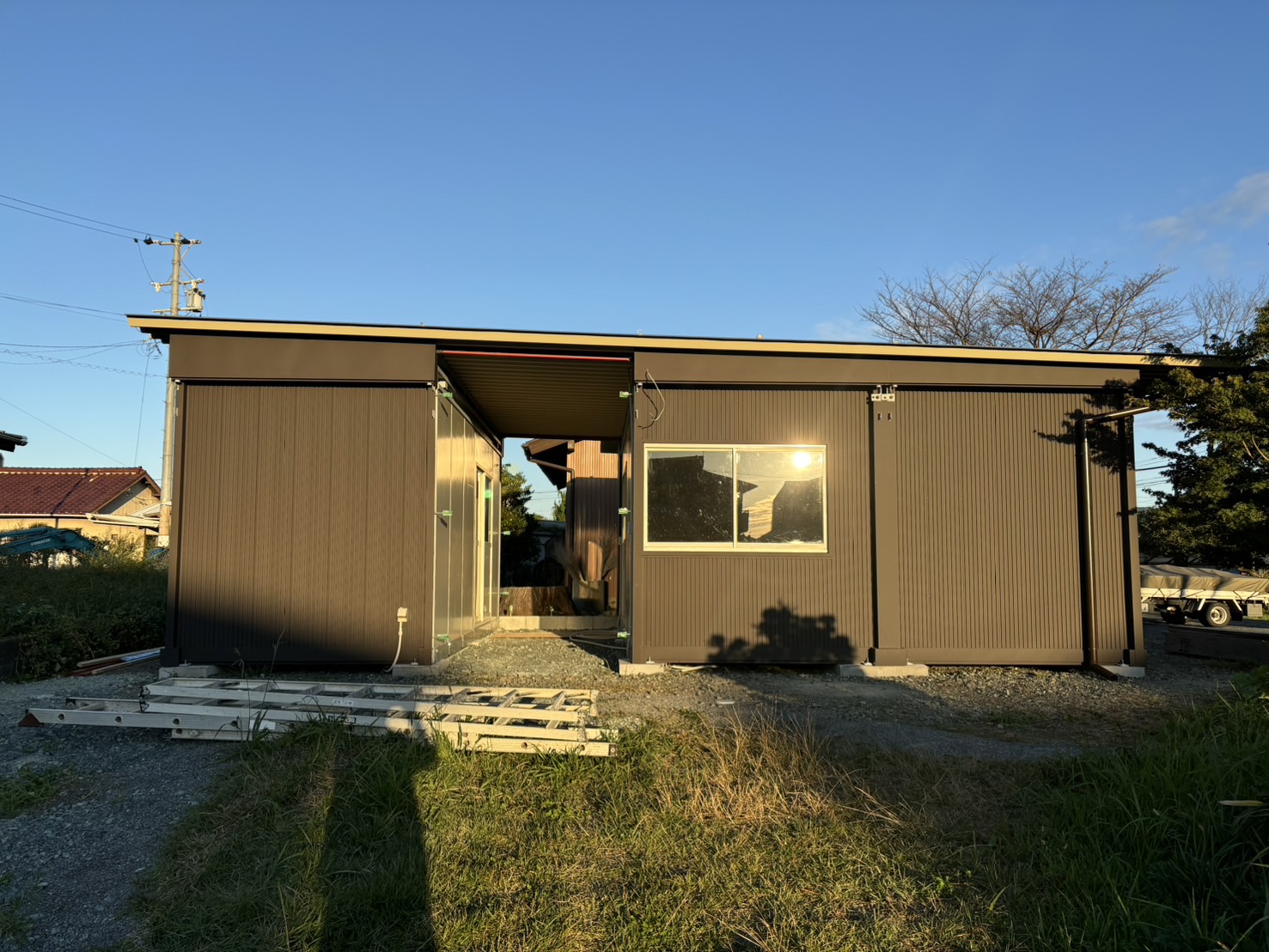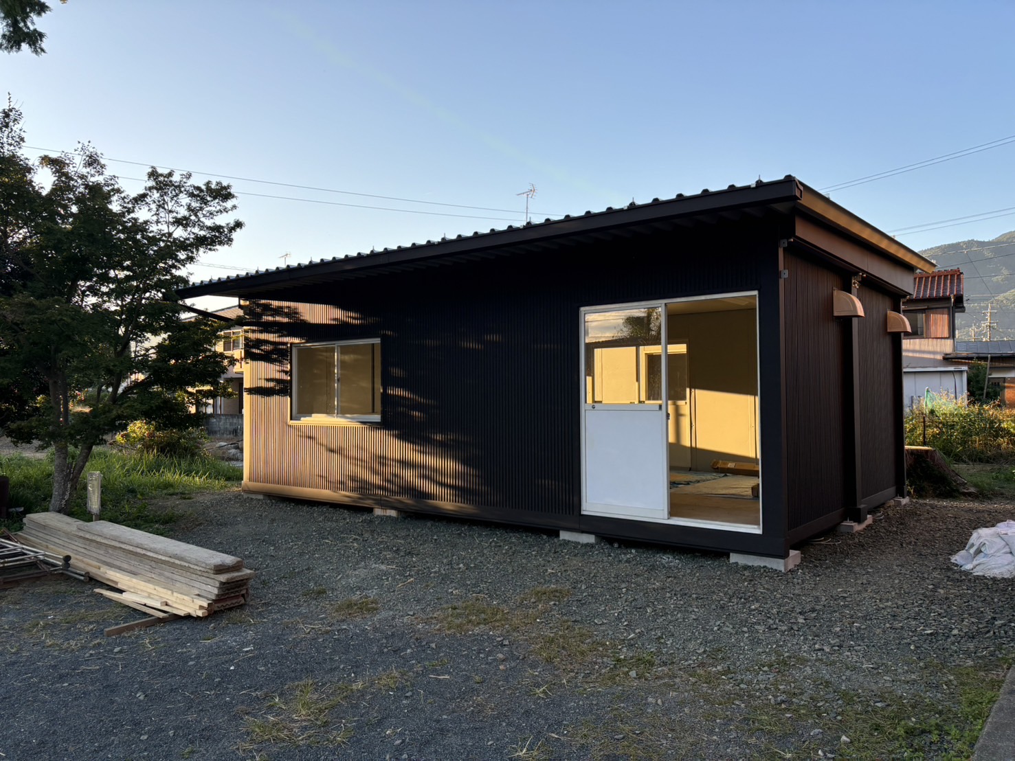 三台のプレハブを大改造! 多目的スペースにしました。 外壁もカッコよく仕上がりました。